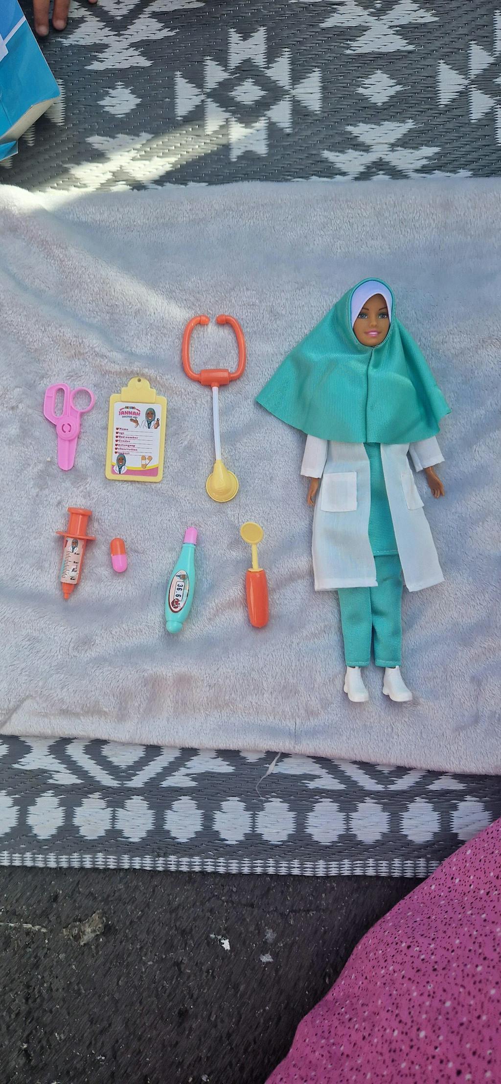 Complete with a hijab and medical accessories, it promotes the idea that they can achieve their dreams while staying true to their cultural and religious values.